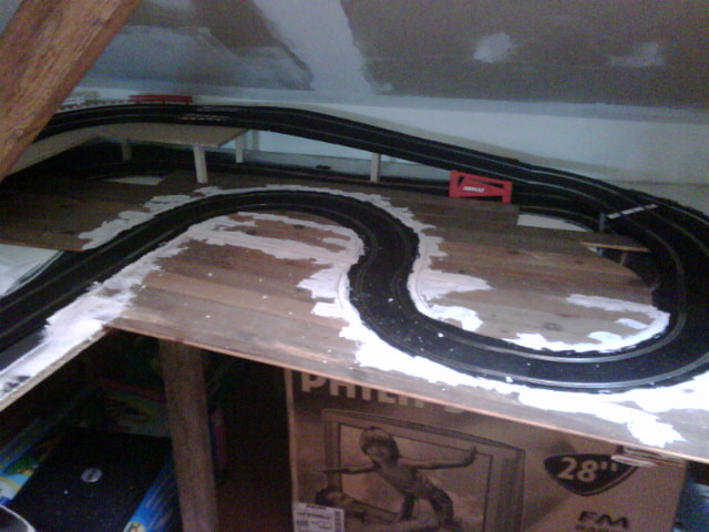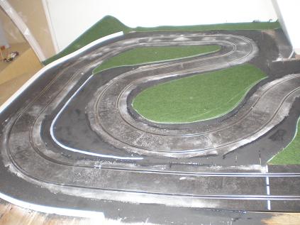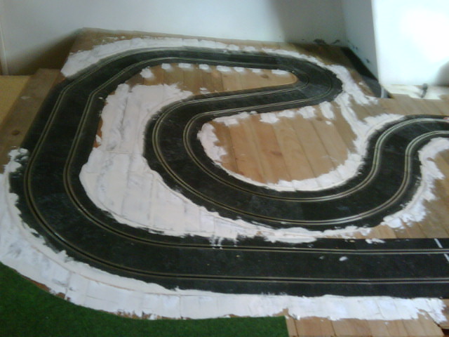 Puis enduit de rebouchage pour enlever tous les trous.... puis petites peintures des bordures... puis pose de l'herbe...