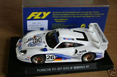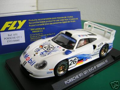 apres tant d'attente et de guettage, j'ai enfin degoté la fameuse porsche 911 GT1 98 qu'il manquais a ma collection, c'est la version 1997, a mettre en ma 1996 ( GT1) et ma 1998 ( GT1 evo), dans la meme deco