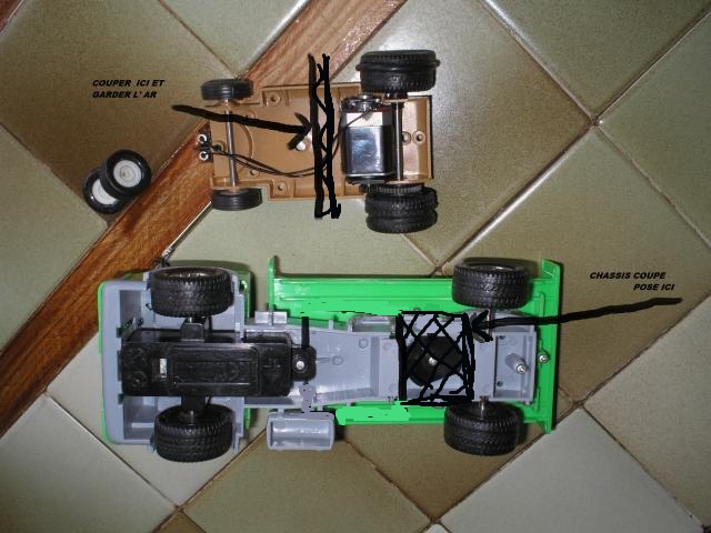 Pour la motorisation, un châssis TROBY sidewinder donné en cadeau avec un achat ( " je t'envoies ça avec, tu arriveras bien à en faire quelque chose" - le donateur se reconnaîtra...)