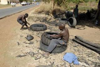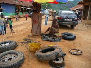 Pas envie de devenir fou avec des roues introuvables dans le commerce, alors la solution: des bandes de caoutchouc de chambre à air collées dans des rainures faites dans l' essieu moteur.