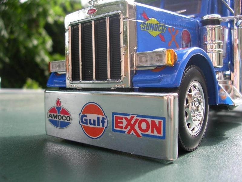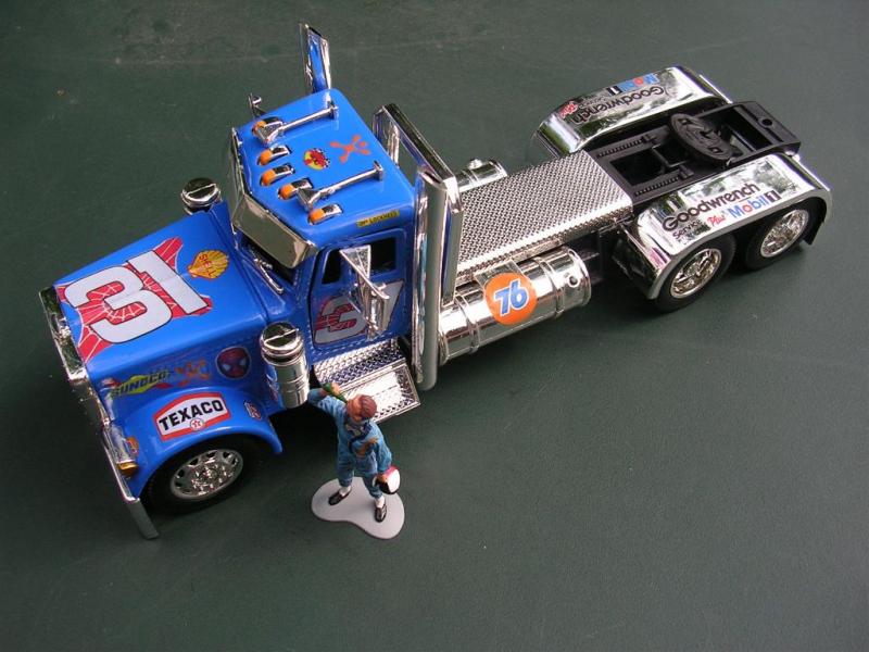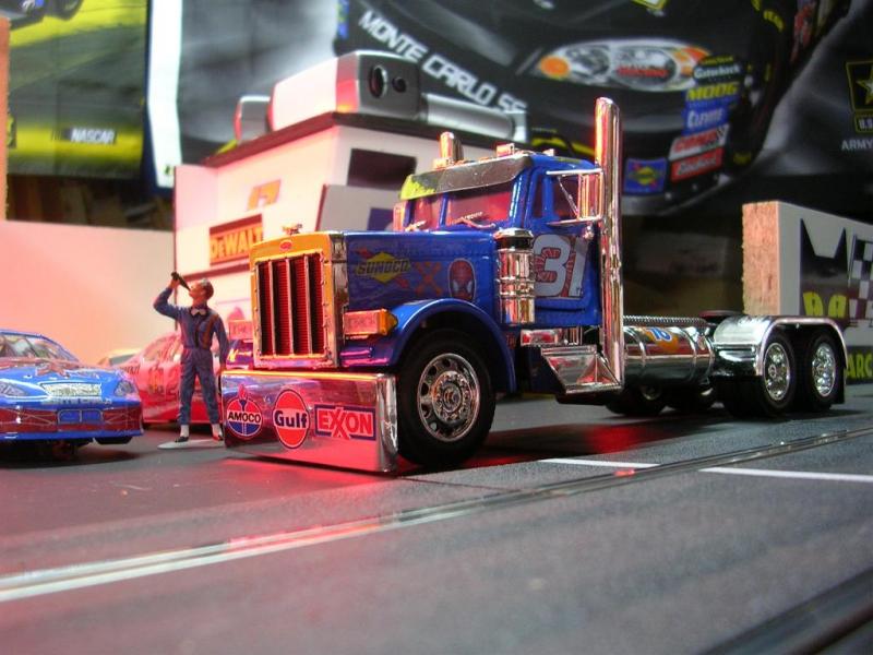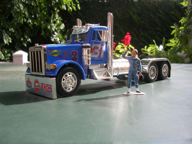 Voici mon dernier camion statique en travaux :c'est un peterbilt 379 remis au couleur de Robby Gordon (Spiderman...).Il parait rayé sur le toit mais c'est un reflet