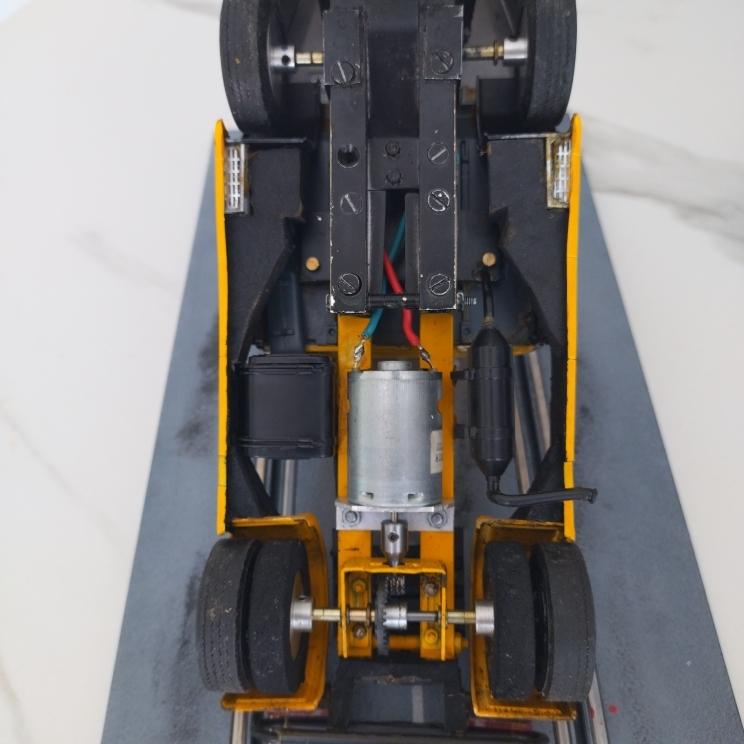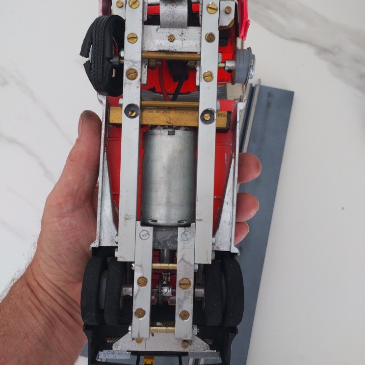 C'était pas le premier qui lui à été fait avec le chassis maquette . Il était un peu souple mais ca roulait bien. Il était surtout moins lourd. Mais malheureusement un choc frontal à eu raison du chassis!