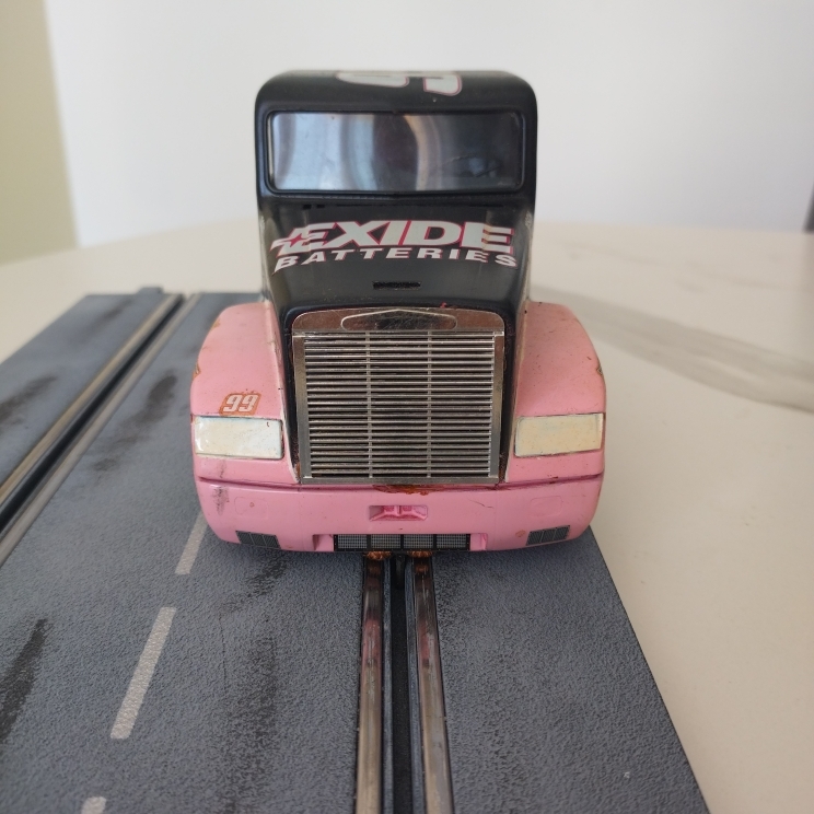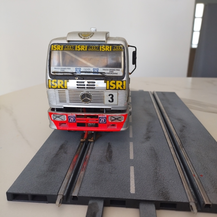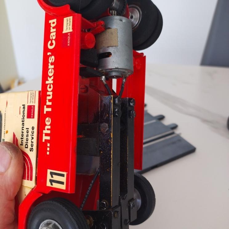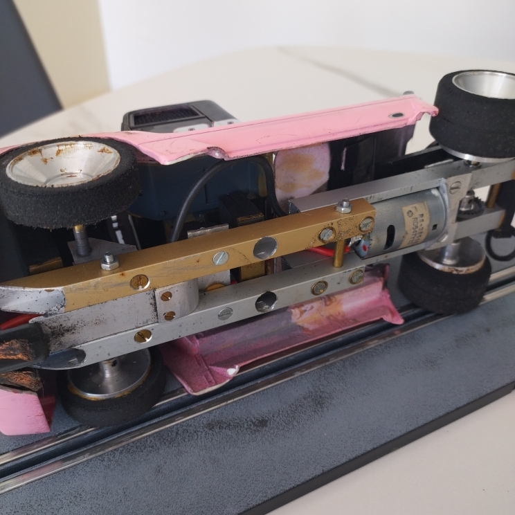 Une fois lancé il roulait vite. La piste en bois était très rapide aussi. Le couple était énorme avec ce moteur. La maniabilité acceptable, mais bien adapté à la piste. Sur une Carrera aujourd'hui c'est un peu ... différent.