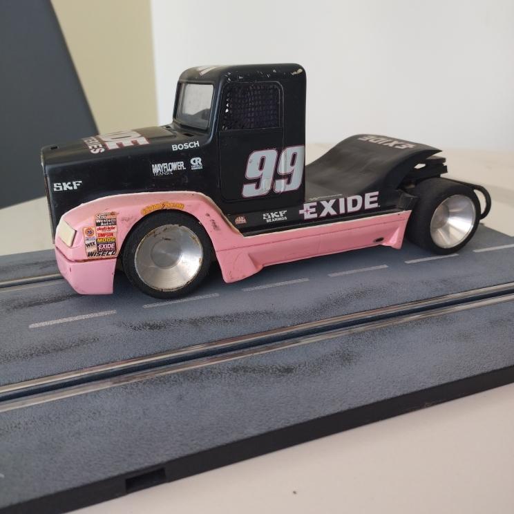 Roues énormes, pas de jumelage à l'arrière. Ces camions là ont été l'ultime évolution pour ces courses. Maniables avec une très bonne tenue de piste même sur mon petit circuit ils arrivent à se frayer un chemin!