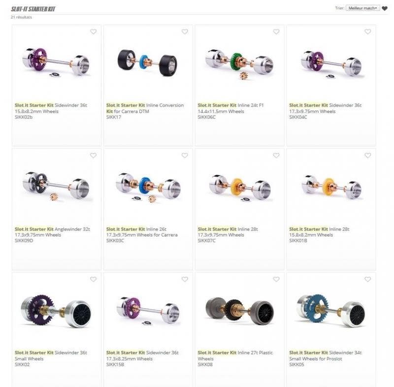 Alors sans vouloir trop te prendre la tête et avoir du plaisir pour un travail pas compliqué du tout, un kit train roulant Soit Slot.it soit NSR prévu pour les voitures Carrera, ce qui te permettra de poser des pneus adaptés et enlever les aimants. Cela te permettra d'utiliser les belles voitures que tu as déjà, et diriger tes achats futur sur des marques plus "pointues" moins belles, quoi que..