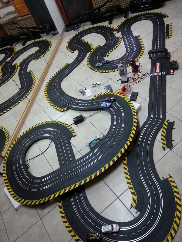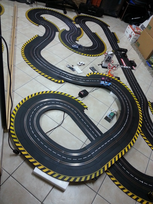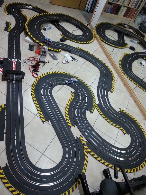 Comme j'ai démonté mon 4 voies, afin de l'améliorer, il y a un petit mois, je n'ai pas résisté à pousser les meubles pour faire une petite piste en attendant!