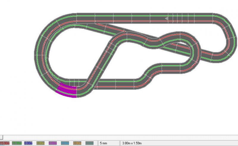 Voila, j'ai essayé de retravailler le circuit pour avoir des courbes différentes (je n'ai plus qu'à essayer de le boucler plus précisément). Je sollicite votre avis pour savoir si ce tracé et ludique ou non! Pour ma part j'ai du mal à m'en rendre compte, ca sera mon premier. Merci à vous.