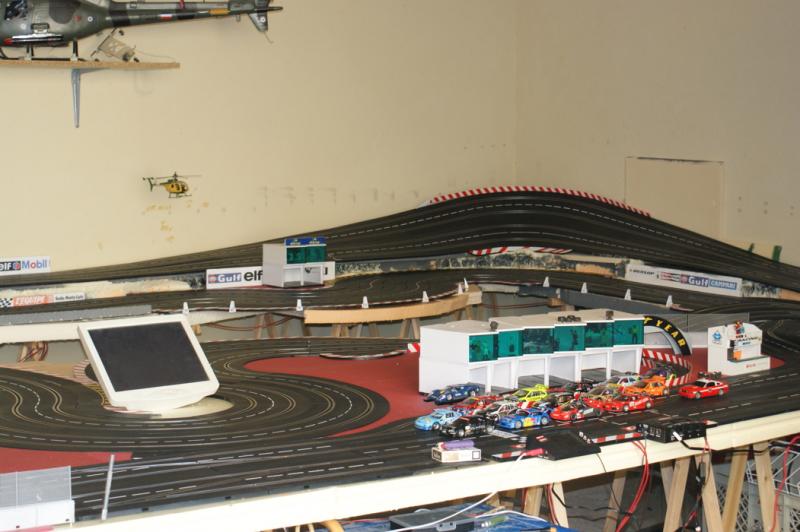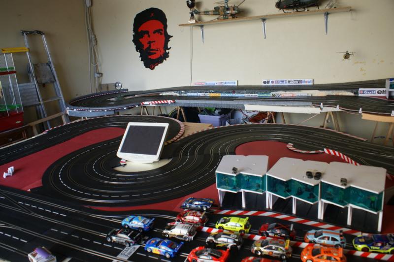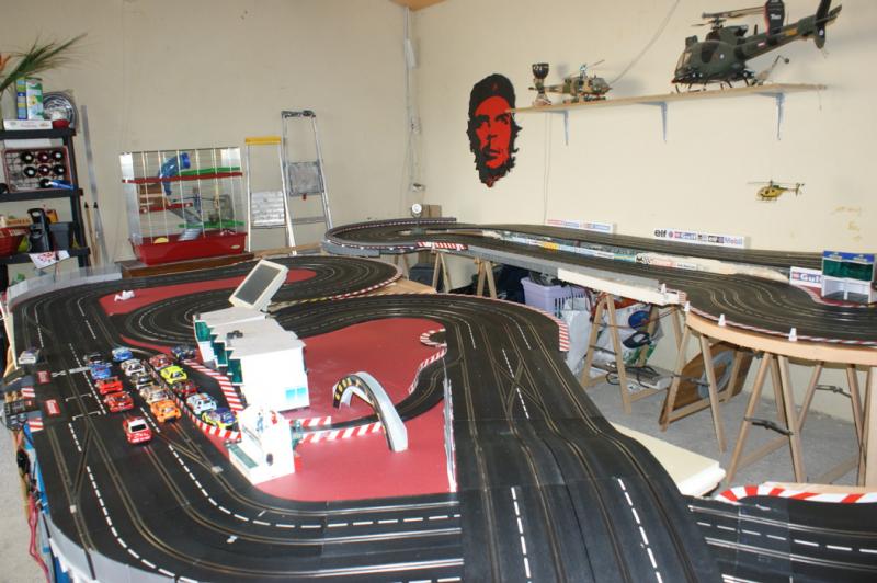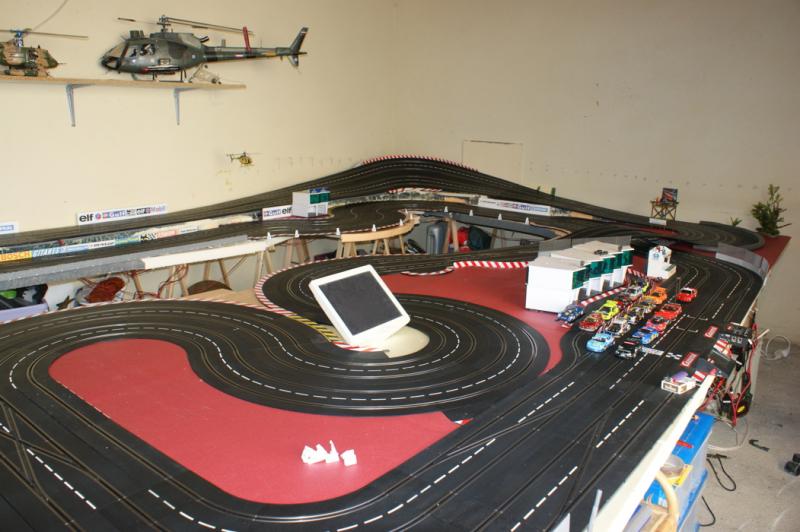 bonjour a tous , j'ai fini l'isolation de mon garage ainsi que ma piste voici le nouveau tracé , 30 mètres en 4 voie digital 132 , 12 aiguilles et 1 pit-line .