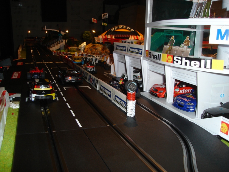 Le monorail de la pit lane fait la moitié d'un rail normal... (ou la largeur d'une bordure carrera)
