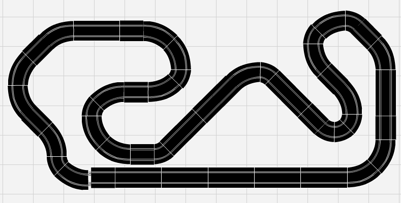 Pour t'amuser il faut pouvoir rouler vite, donc quitte à t'éloigner du tracé original n'hésite pas à allonger les droites : a la vitesse d'une voiture une droite de 35cm se parcourt en un instant, tu n'as pas le temps de mettre les gaz, donc du coup la moitié du circuit va se faire à mi gaz sans trop piloter : tu aura juste une grosse accélération en sortie de virage et un gros freinage en bout de ligne droite... très vite ennuyeux.