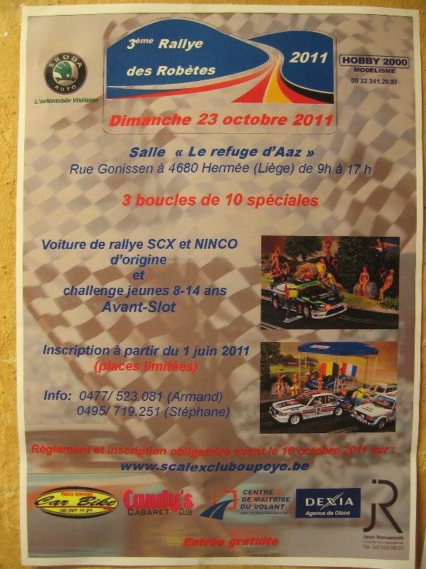 L'édition 2011 du « Rallye des Robettes » une idée venue aux organisateurs après qu'ils aillent participés à un autre super chouette rallye à Floing en France et pas très loin de la Belgique, le « Rallye des Vaches ». Je ne sais pas d'où est venue l'idée de baptiser le rallye belge du nom de « Robettes » qui veut dire « lapin » en wallon de Liège. Le principe était déjà avec des personnages au bord des ES qu'il ne fallait pas renverser sous peine de pénalités (10 secondes par personnages)