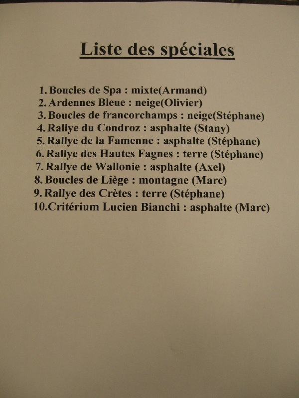 Je viens de consulter les 3 pages de ce topic et je constate avec surprise, car je l'ignorais, qu'en Wallonie il y a un fort engouement pour les courses et challenges en version rallyes.