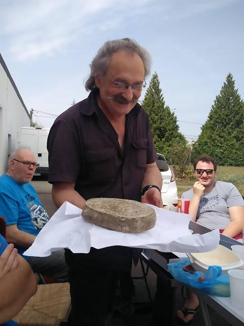 Ensuite il s'est occupé du partage de la maquette...bien bonne ma foi. Un Saint Nectaire entier apporté par nos "amis gaulois" du club de CLERMONT FERRAND . Non seulement le Saint Nectaire, mais aussi deux saucissons pur porcs Clermontois...un régal, une tuerie...du mozart !!! Aller les amis, photos de la tablée du Dimanche...