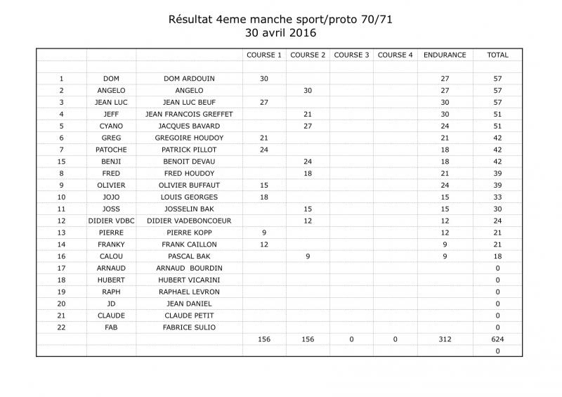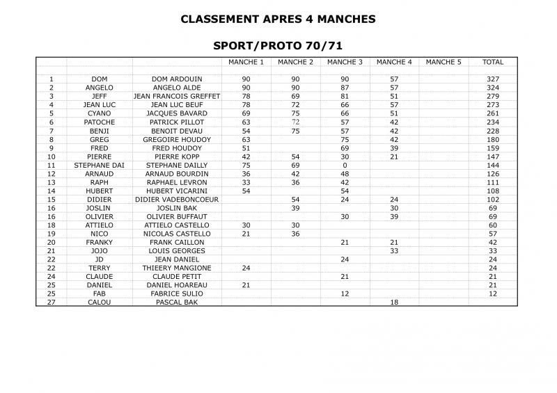 Les résultats et classements après la 4eme manche qui a eu lieu ce samedi 30 avril.