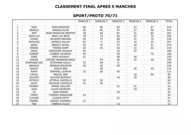Et comme les bonnes (et les mauvaises par ailleurs) choses ont une fin, voici le classement final de ce magnifique championnat du monde 70/71.
