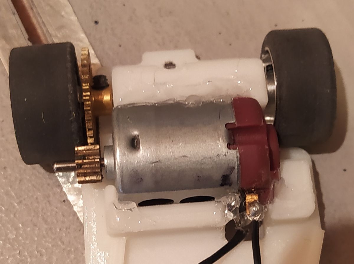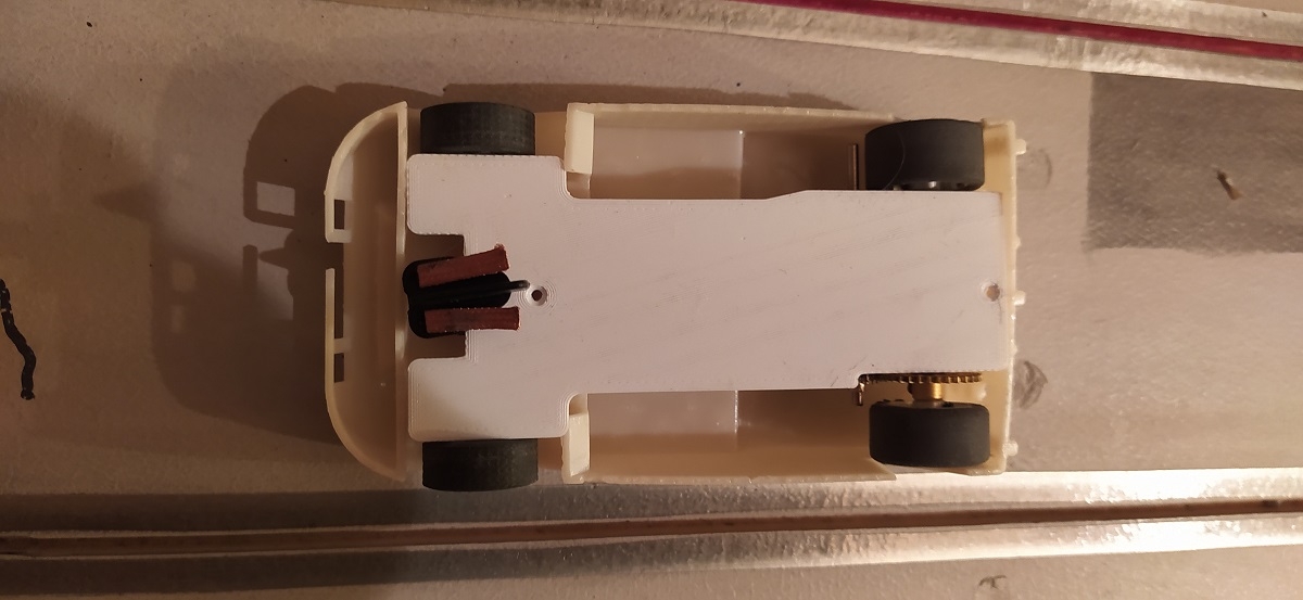en fait, le problème est que je veux que la totalité de l'axe arrière fasse 55 mm pour rentrer dans la voiture, mais la difficulté c'est avec un moteur en sidewinder ! histoire de préserver l'habitacle, avec un moteur en ligne c'était + facile mais empiétait dans l'habitacle ! ... ensuite, l'autre problème majeur, c'est qu'avec l'impression 3D tu peux difficilement faire des parties de 2mm de larges, surtout avec du PLA, ce que j'imprime, j'imagine qu'avec de l'ABS ça passe, mais j'imprime pas ça ! trop contraignant !!! du coup, il faut que ce qui supporte l'axe soit assez épais !!! mais dans ce cas, le moteur ne passe plus ! du coup, comme dab, je me suis pas fais chié, j'ai mis le moteur "debout" ! j'ai fais un logement, il rentre pile poil dedans, un peut de colle a chaud et en avant ! ....