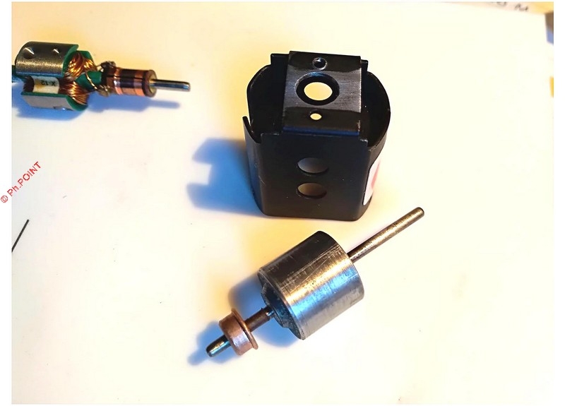 Je prépare la cale d'alignement des charbons ainsi que l'axe moteur qui l'accompagne :