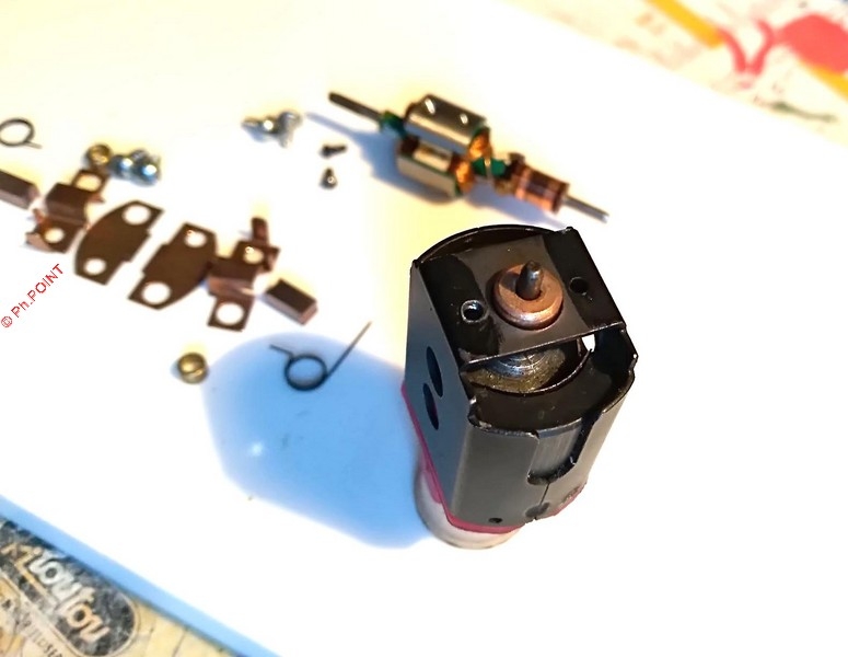 En remontant l'induit dans la cage je m'aperçois aussi qu'il y a un très léger jeux longitudinal de l'axe moteur.