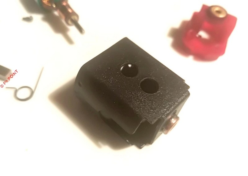 Je modifie la forme de la petite patte d'accroche du ressort de charbon, c'est visible sur la photo.