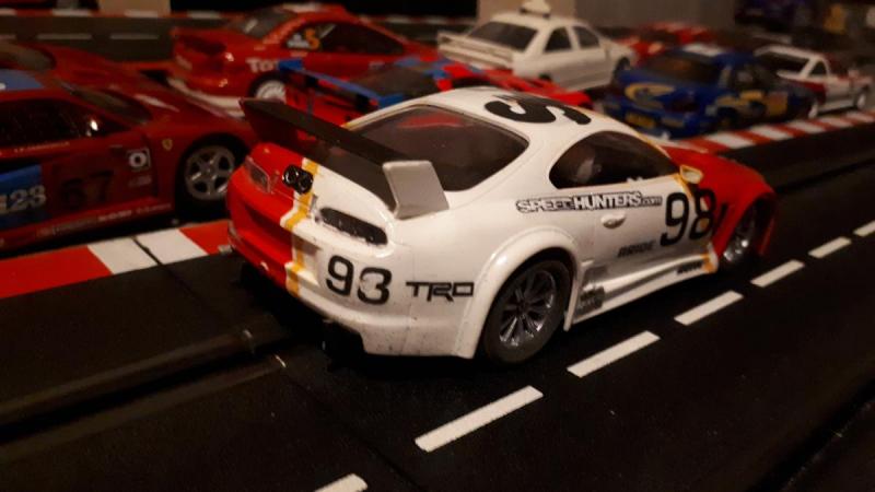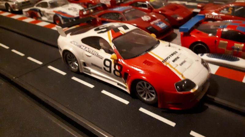 Salut a tous j ai pas mal bricolé ces temps, j avait en reste une jolie carrosserie de supra revoslot que le vendeur de ma supra castrol laissait avec . Me suis fait un p tit châssis rapide brut de decoffrage en un temps record et ai innové en m essayant aux suspensions . Et ben super content , ca roule top ,mieux que ma revoslot. Voilà un p tite supra qui m aura coûté un peu de temps et quelques bonnes pieces que j avait dans mes boites .