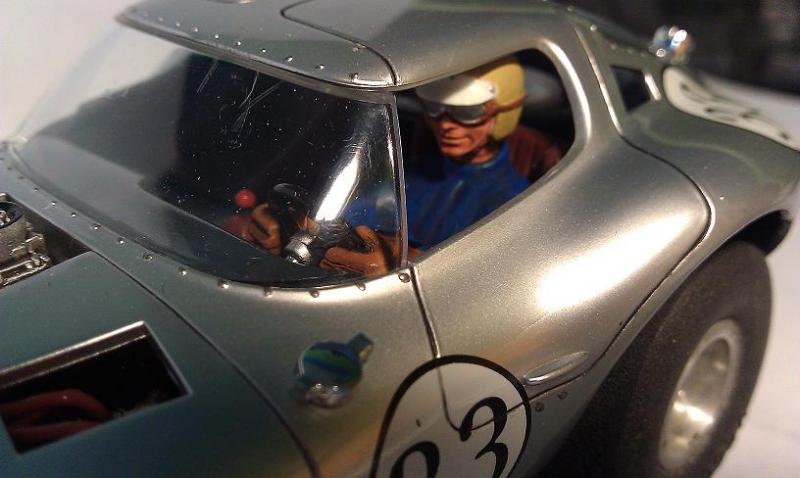 bon comme les cox sont introuvable ou trop cher du moins dans un état correcte, je me suis rabattue sur la carrera,le châssis d'origine étant trop lourd il dégage, pour faire place un châssis monter de toute pièce avec différent éléments intérieure repeint et la tête du pilote changer .
