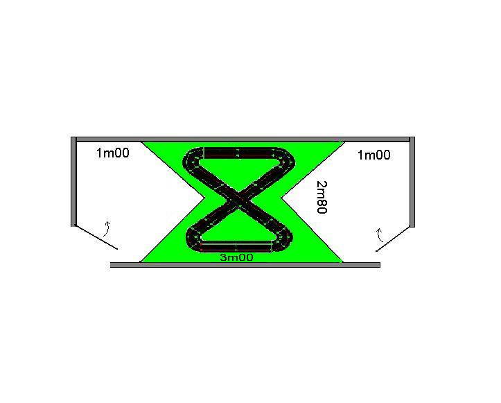 je peux me faire un plateux avec les dimension max de 2.80 sur 3.00m (pour le moment) biensur faudrais pas que soit rectangulaire et que j'ai du mal a attrapé mes voiture plus loin en effet ca sera le long de 2 mur et j'ai encore une marge de 1m de chaque coté ( il y a des portes aux extremité des 2 coins).