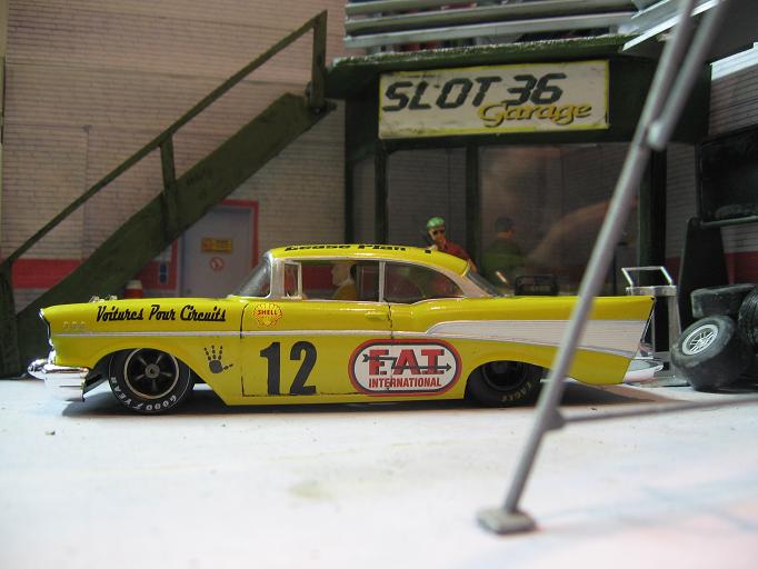 elle est montée sur un slot classic je l'aurai bien adaptée sur le chassis de la maquette mais je l'aime bien ce p'tit slot classic. les jantes arrières sont des nascar scalex et les avant des mrrc