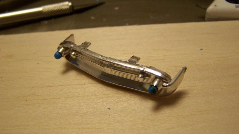 les pare-chocs, normalement ont des bumpers en caoutchouc, absents sur celui du kit. du coup on a percé, et inséré deux bumpers tournés maison.