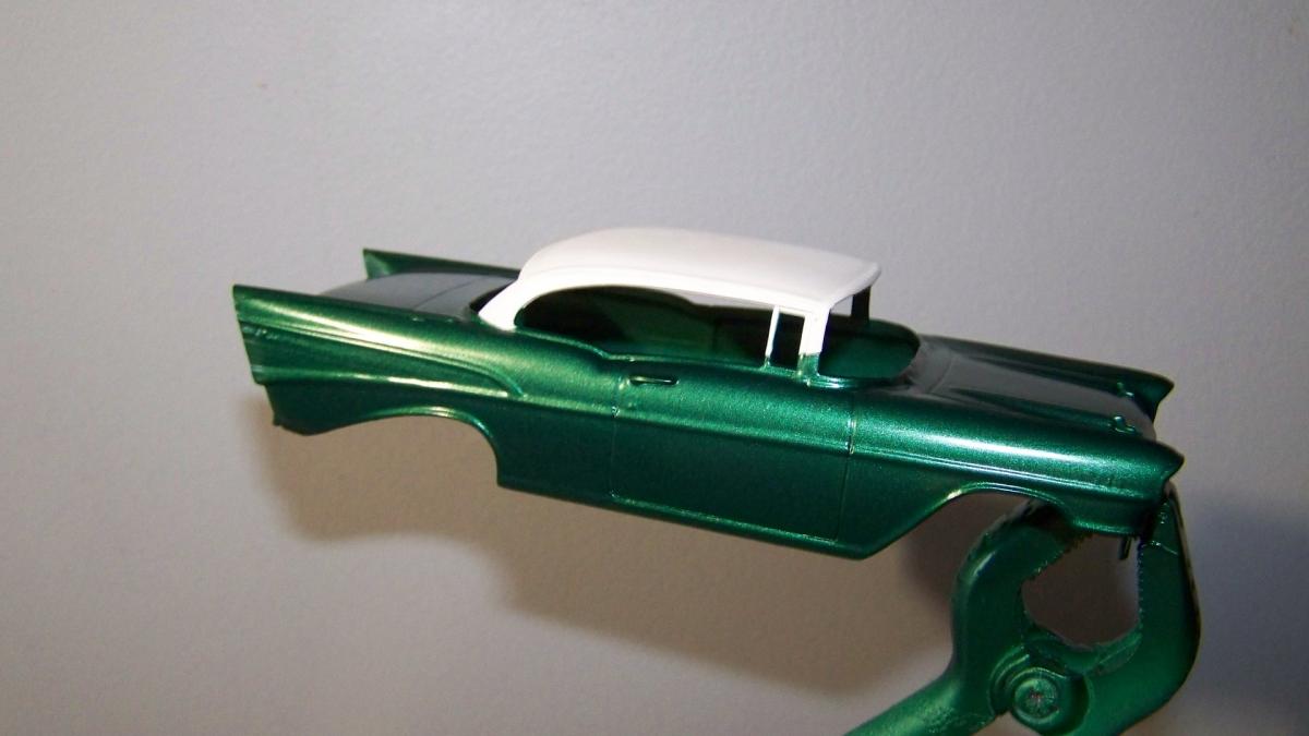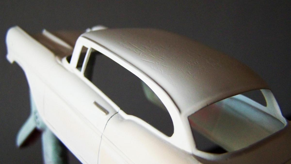 Puis une couche de blanc brillant Tamya sur le toit, vu que je comptais faire ma Chevy en deux teintes.