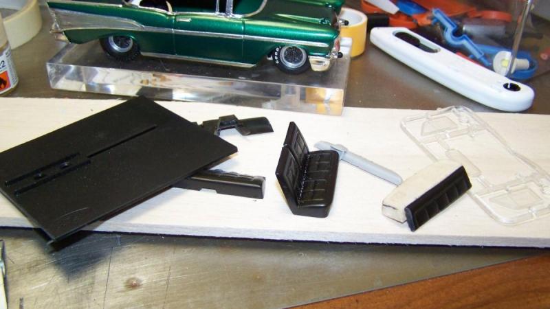 Puis la banquette avant, le dossier découpé de la Lincon. Peint en vert très clair.