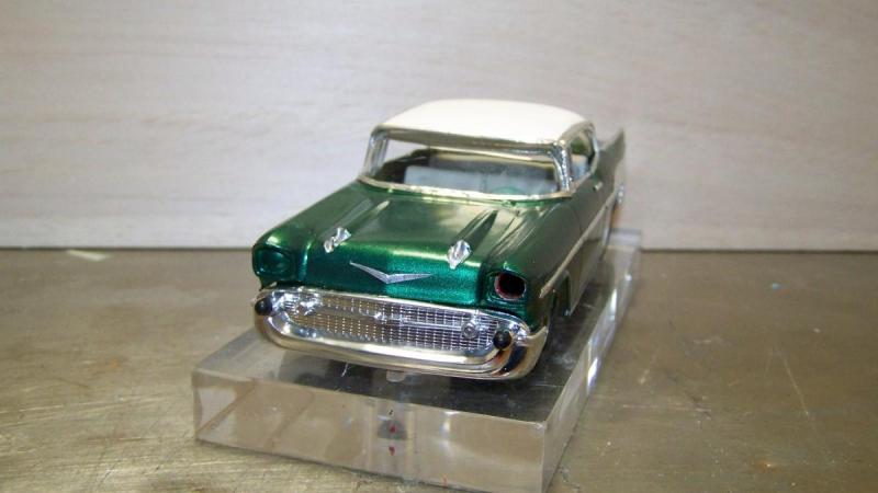 Derniers chromes autour du phare droit, un coup de verni sur le chrome et remontage sur le chassis et voilà, l'auto est finie. Malheureusement comme d'hab, mon vieux Kodak ne fait plus l'affaire et les photos sont pourries. Bon voici les moins minables des vingt clichés pris.