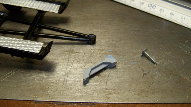 On passe à l'intérieur, pour une étrange raison il manquait à l'appel dans la boite. de toutes les façons, il aurait fallut le modifier pour slotiser l'auto. Un coup d'oeil dans la boite à pièces de rebut, et on trouve un tableau de bord. En fait il s'agit des deux coté d'une des cheminées du destroyer ayant servit au scratch de ma Noble Steam Spirit. La casquette et le panneau d'instrument proviennent de la même boite