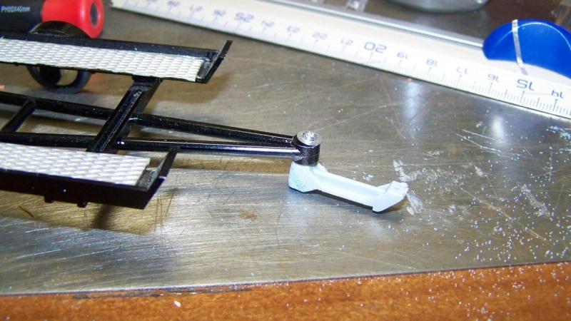 Pour rappel, je voulais cette voiture pour tirer ma remorque avec mes machines de record posées dessus. Je rappelle également qu'à cet effet, j'avais déjà acheté un kit anglais de remorque à un essieu. Petit problème le système d'accrochage me plaisait pas. Ci dessous la première version avec mon crochet d'arrimage taillé dans une traverse d'Austin Healey Frogeye.
