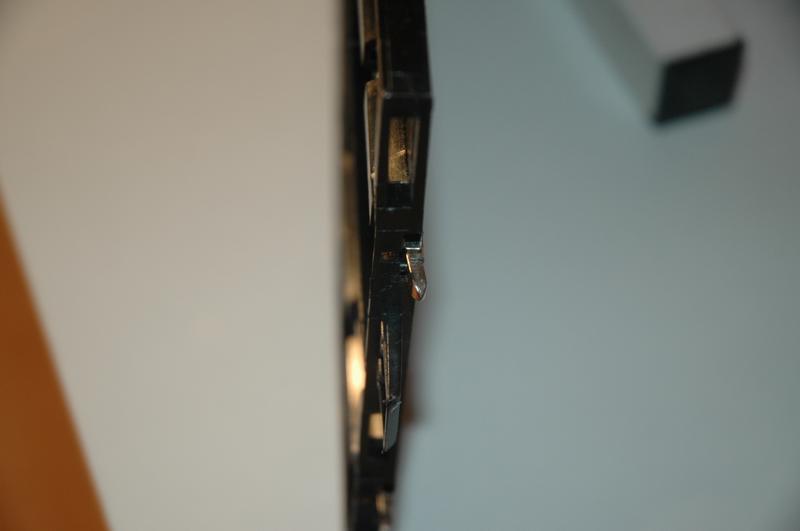 Pour résoudre ce problème, se munir d'un tournvis (comme on dit à Lyon) ou d'un tourneuvisseu (comme on dit à Toulouse) et aplatir gravement les pattes de fixation du rail :