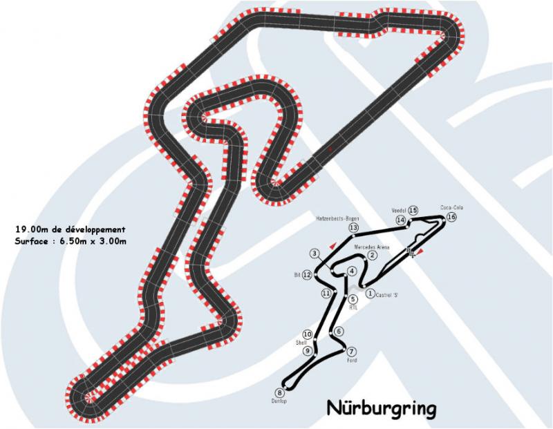 ce qui me gêne un peu quand on veux reproduire un circuit existant c'est ou tu a beaucoup de place comme le dit Fs83 pour avoir un circuit qui colle a la réalité ou tu fait comme te le dit steph un circuit avec quand même une grande surface mais qui me frustre un peu car avec un plateau de 6,50m de long tu n'a qu'une ligne droite de 2,40m,et je trouve cela dommage surtout si tu dispose de cette place , voila mon sentiment , pour résumer si tu a de la place essai de te faire une grande ligne droite , sinon si tu n'a pas de place bin tant pis pour toi