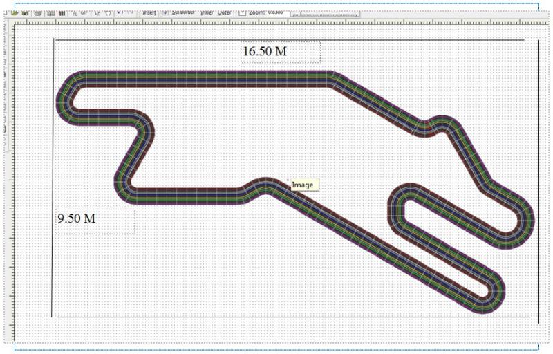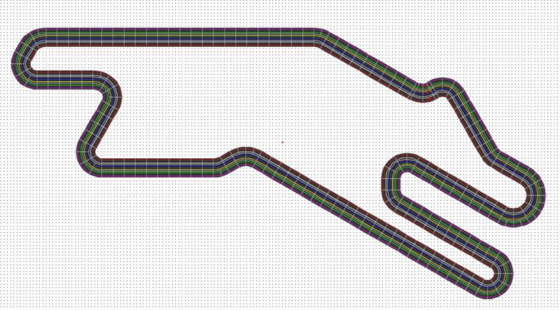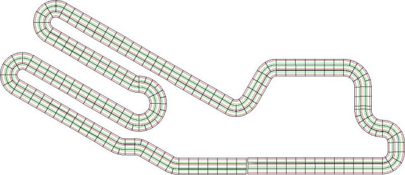 je pense qu'il faut peut-etre réduire un peu certaines longueurs, histoire de ramener la longueur de voies à + ou - 40m. enfin, faut faire un essai de tracé et comparer... surtout que j'ai l'impression qu'il ya bcp de place de perdu au milieu de la piste.