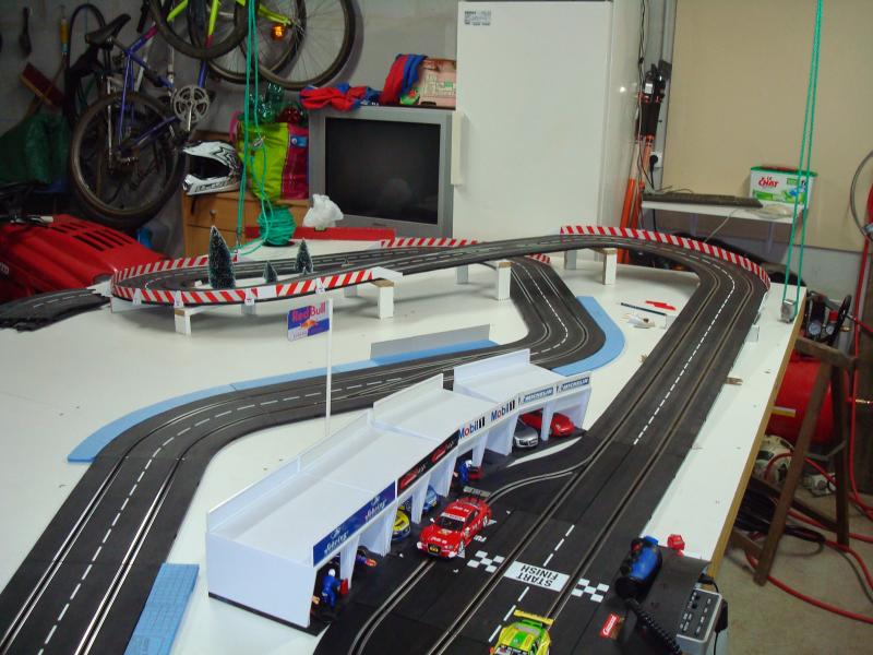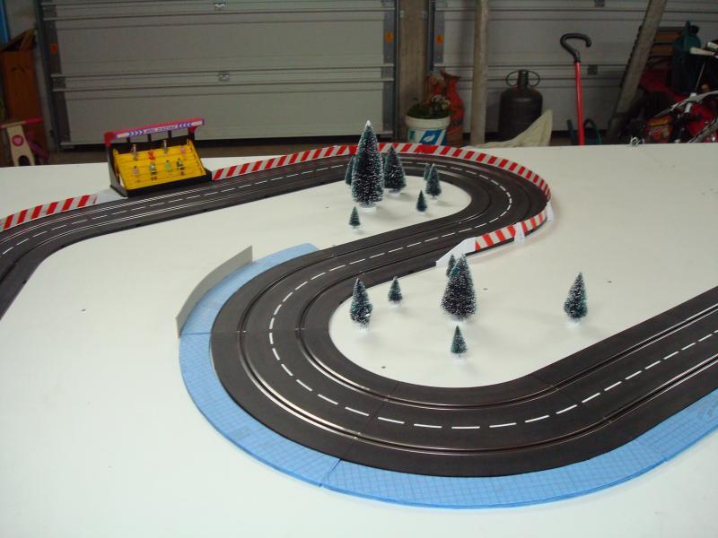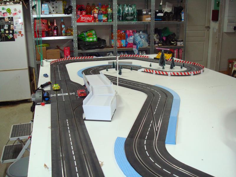 Le tracer à changer car j aI une ferme qui passe au milieu du plateau donc le pont pour faire un 8 et équilibrée les voies doit être d un côté ou de l autre autrement je perds trop de hauteur dans mon garage