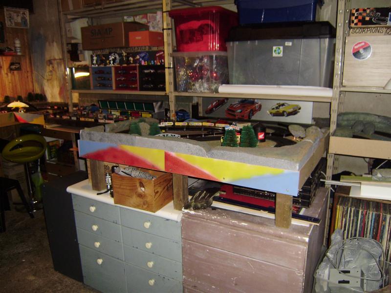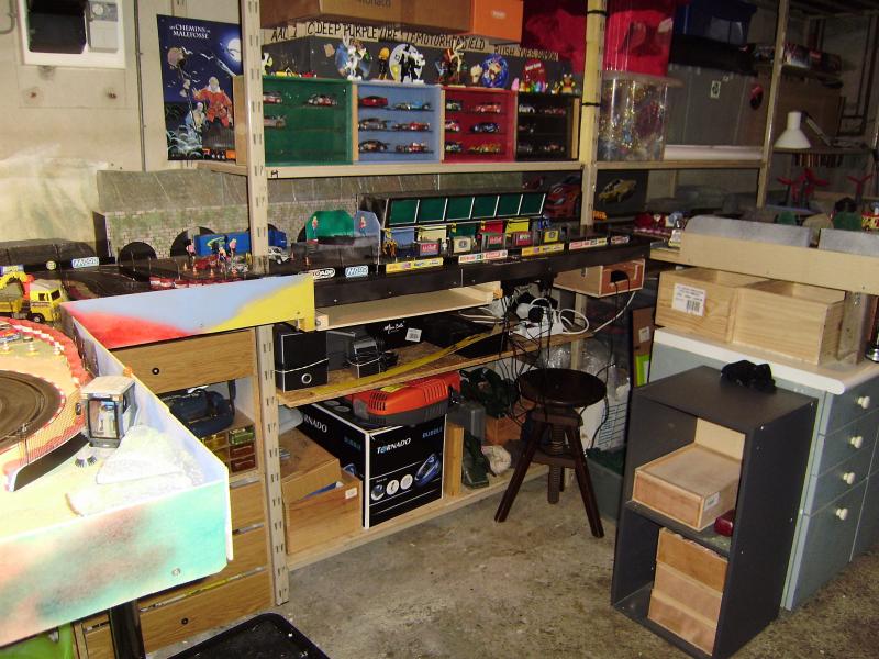 bonjour,joli projet.moi aussi je voulais faire un suspendu afin de gagne de la place.j'ai laisse tombe trop galère.par contre je vois que sous ta fenêtre tu a pas mal de place tu pourrais faire un L qui reviens vers l'endroit ou tu compte (je suppose) installer tes outils.a moins qu'il faille que tu rentre une auto si c'est le garage.je mets quelques photos de mon installation avec comme tu peux le voir des rangements en dessous et au dessus du circuit.