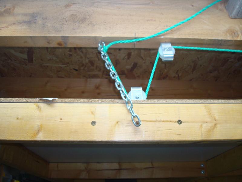 coucou tout le monde bon j ai pas fini le systeme pour relever le plateau il me manque des poulies simple et double car je vais moufler celle en haut pour diviser la force de traction je pense les avoir fin de semaine prochaine