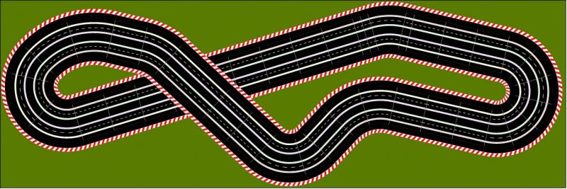 maxo29 a écrit :besoin d'aide pour un trace de club en 4 voies carrera sur un plateau de 6mx2m avec si possible un banking en r1 et r2.
