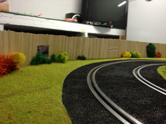 dans les parties du circuit ou les voitures ne peuvent pas glisser sur le gazon ca frottes sur les haies ou les bords de piste