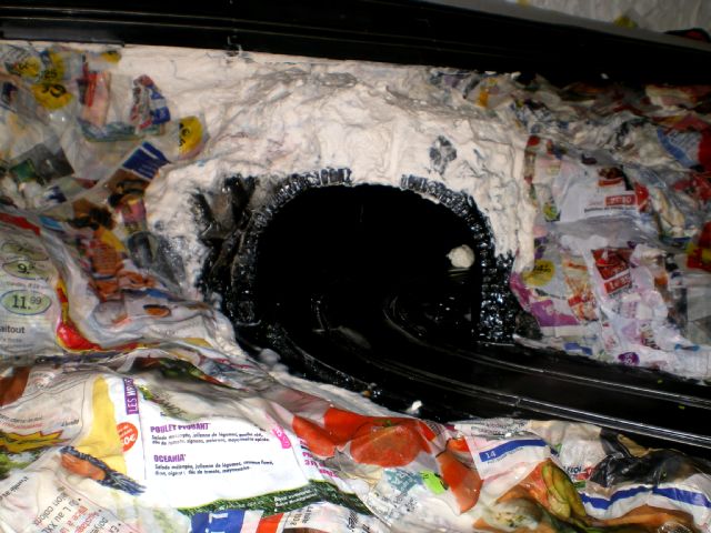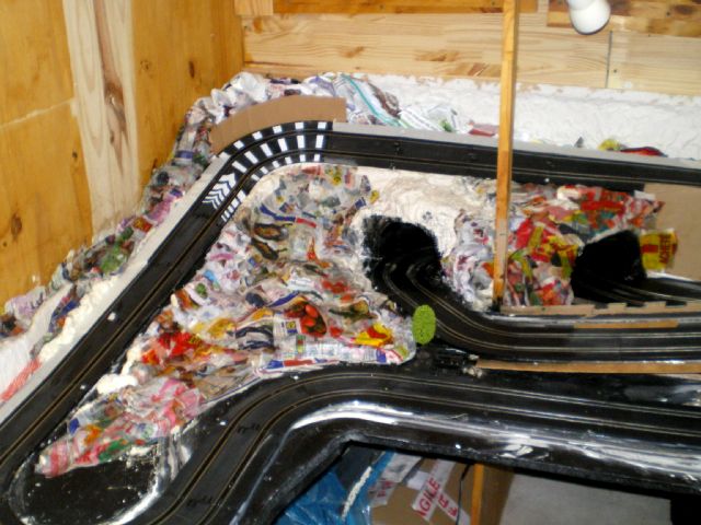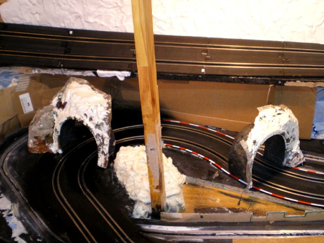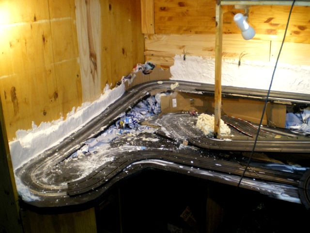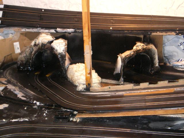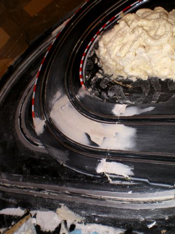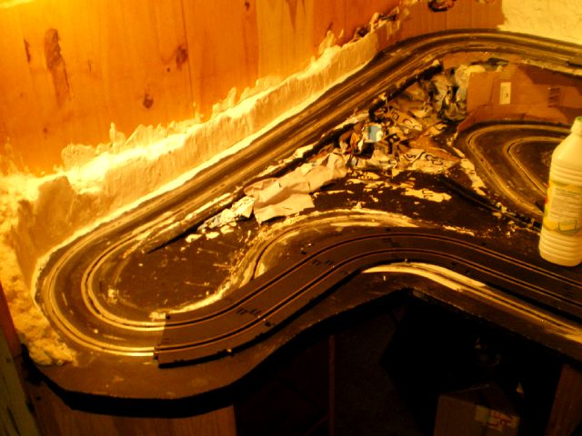 retour ver la démolition...le plâtre cassé, bien sur tout est a refaire mais je préférais faire un beau décor sur un circuit qui marche... rien ne vaut une bonne base... le reste cest de l habillage....
