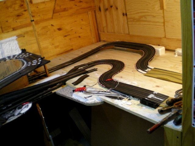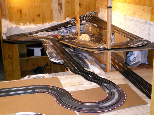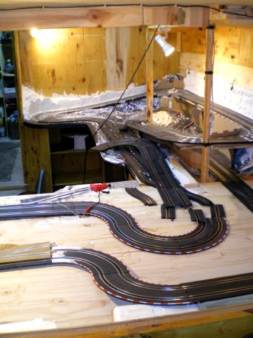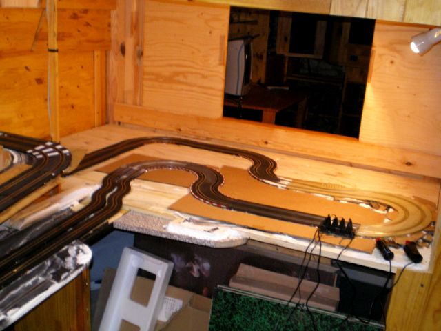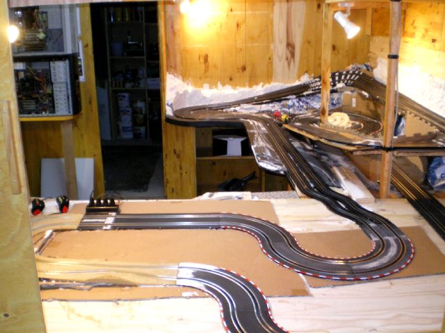 je conserve l idée de faire une piste de vitesse démontable pour les journée slot en famille qui pourrons se faire dans mon jardin.. mais pour l heure cest ambiance nature, montagne et lacs dans la cave...avec dose de pilotage car impossible de laisser la manette fixe mais cest le but aussi..non ??