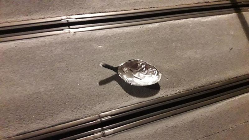 On peut voir au font l'esquisse des lampadaires, fait avec des tubes métalliques et des cuillères à café pour les support de lampes: