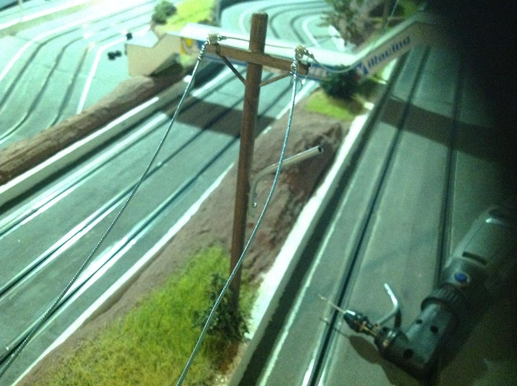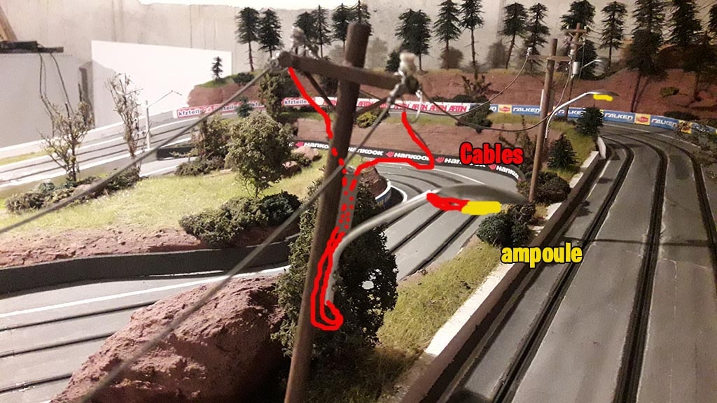 Les poteaux electriques vont servir de support pour les lampes qui elles seront alimentées via les cable électriques en cable de frein: