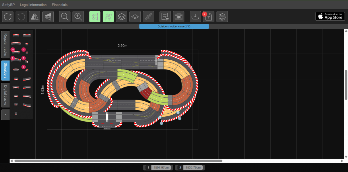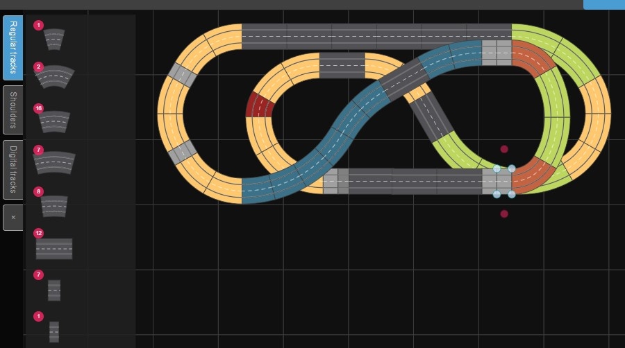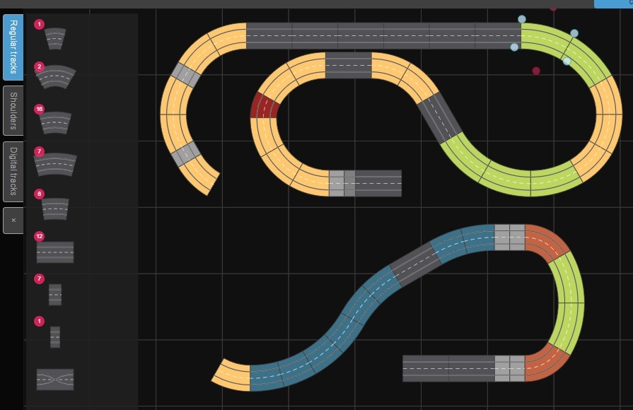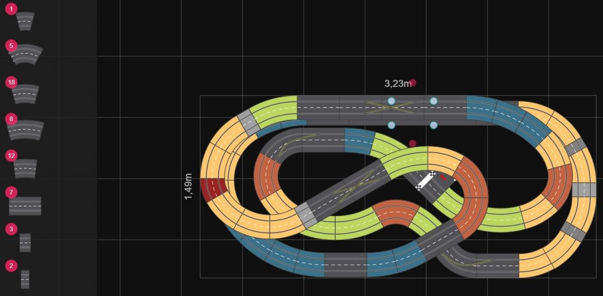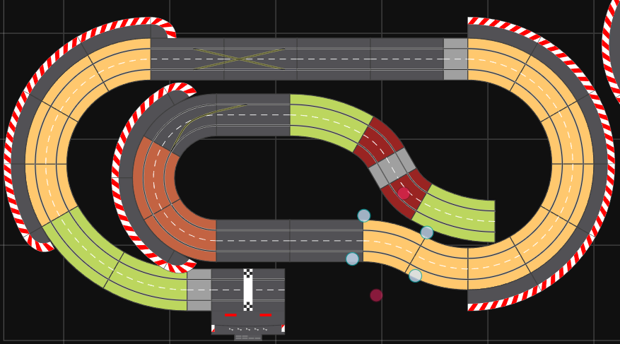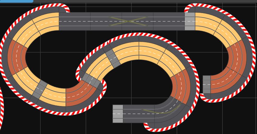 - la partie la plus rapide sera la ligne droite du bas, avec des virages relevés avant et après, mais la ligne droite "pure" reste assez petite (4 rails droits)