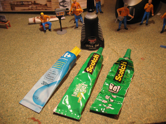j'peux dire une "conn...rie" ..... quand j'ai commencé le carton plume, je me suis dit, avec quoi je vais coller .....bon.....c'est du carton...papier....un peu de mousse à l'intérieur..... alors....colle tout c.n pour papier....impec, mais il faut maintenir un petit moment pour assemblage perpendiculaire ...... alors.....l'idée...... en faisant des cordons de la même colle (pas chère) et entre les cordons une petite goutte de super glue pour positionnement, prise de celle ci en 10s et le reste sèche en 5mm.....Impec!! essai de décollage: même au cutter, arrachage du carton !