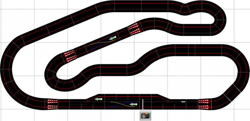 Je réfléchis donc à mon tracé en intégrant l'arrivée du digital et plus particulièrement à la PB6 de Scalextric (système visiblement bien abouti, fiable et suivi dans le temps).