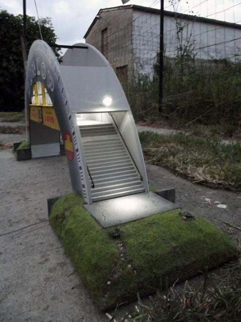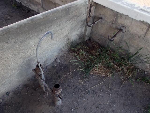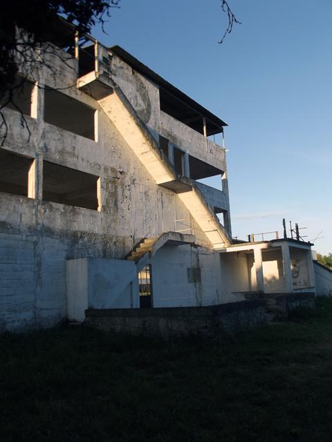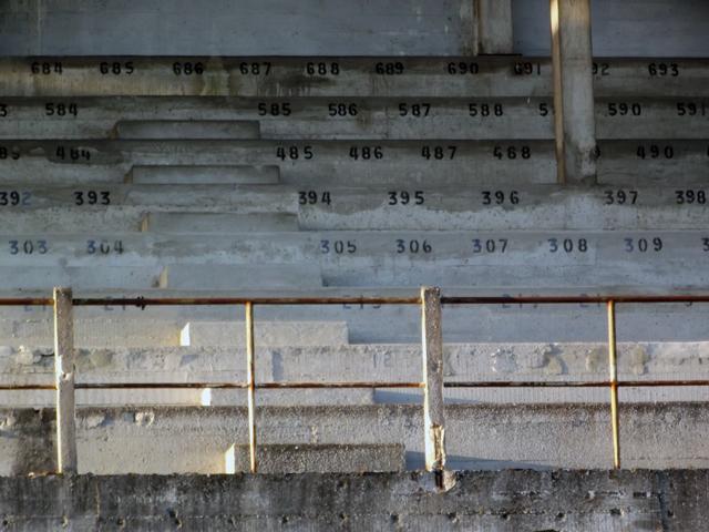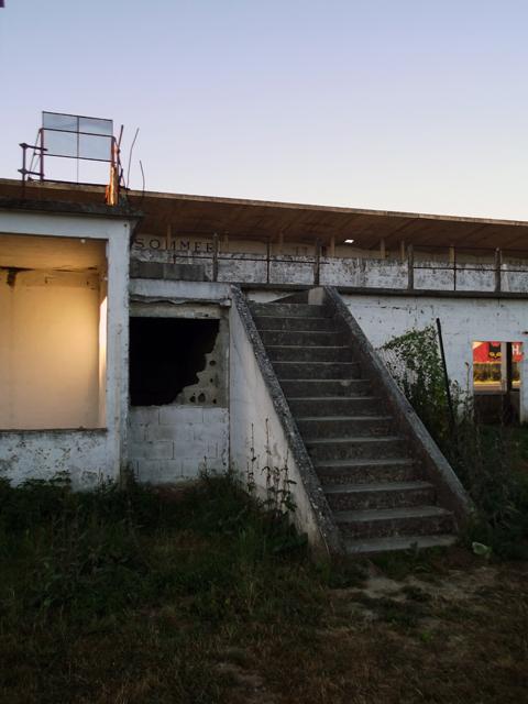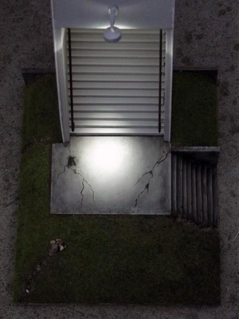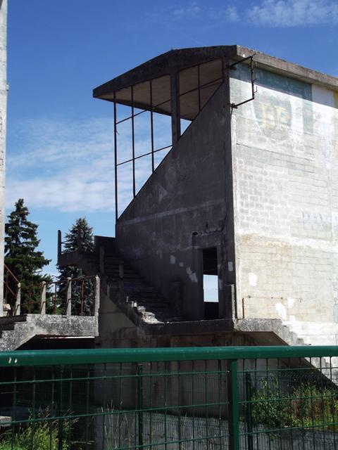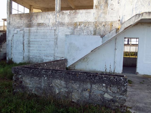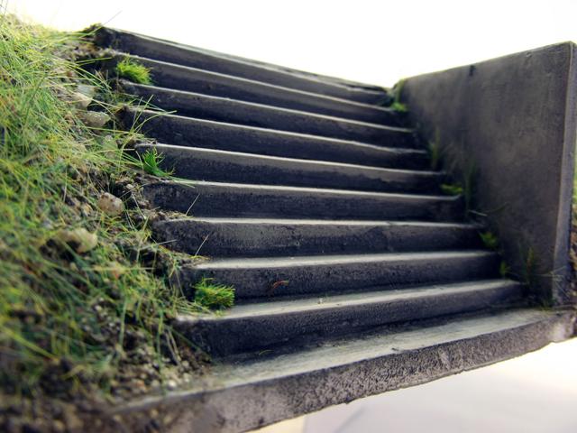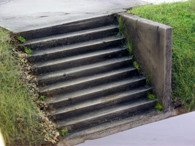 Patine des murs, des escaliers et des plateformes des zones d'herbe.