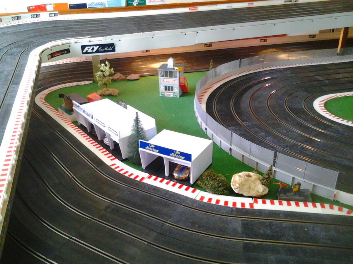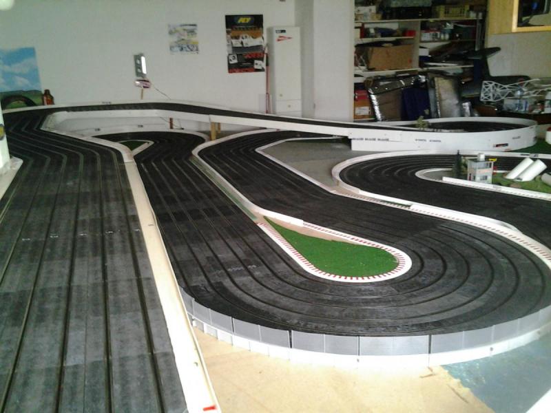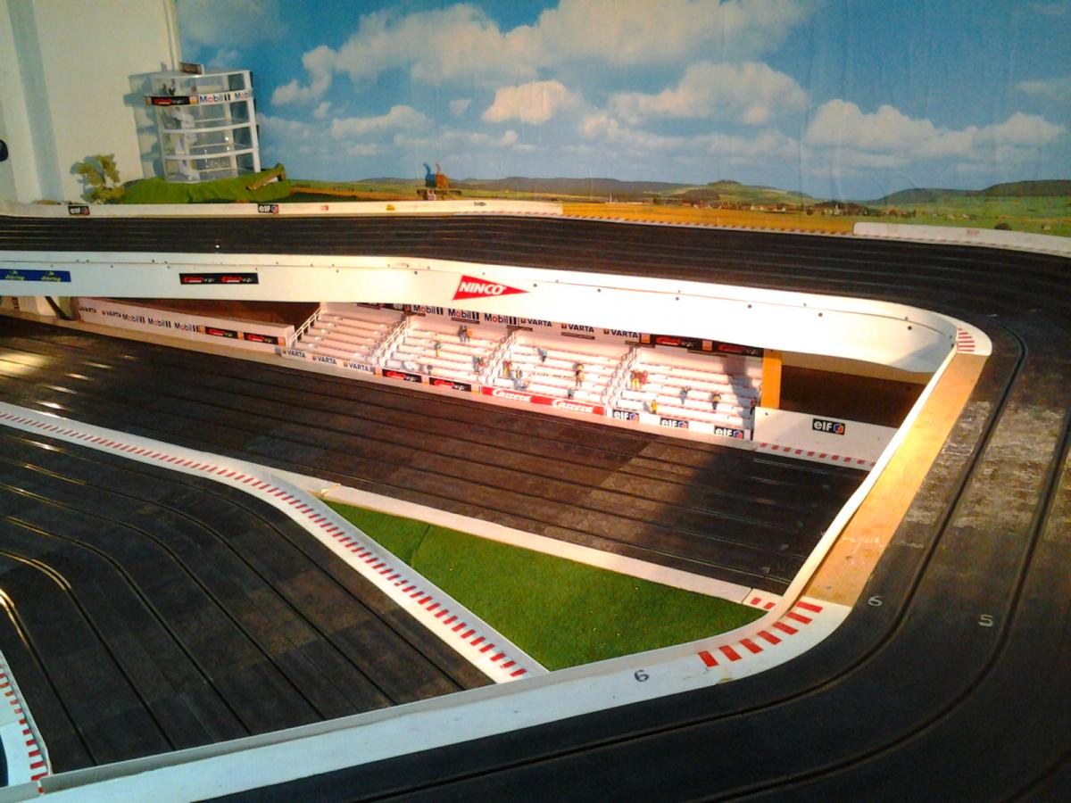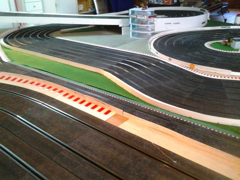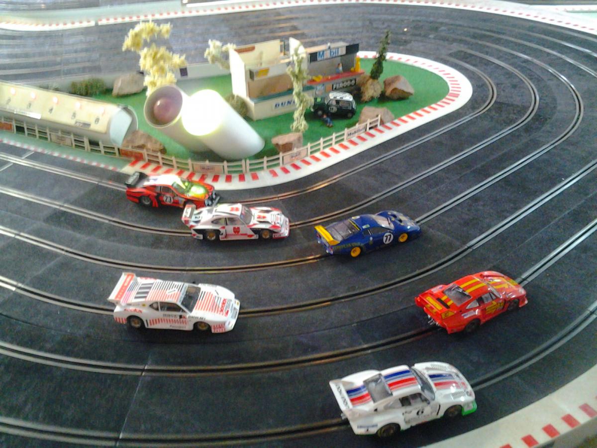 Piste Ninco 6 voies de 43 m et des poussières, 6 alimentations par piste, 6 transfo 15 v 4 A ,et pleins de voitures. Pour le reste et d'autres photos , on verra plus tard !!